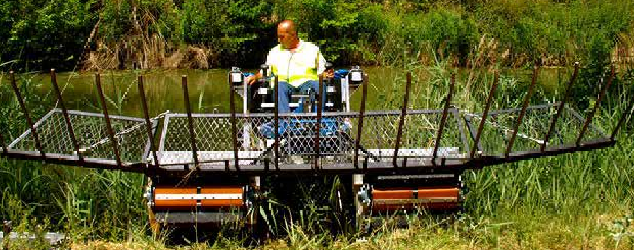Es ideal para trabajar en la retirada de maleza, vegetación, algas, etc…, en zonas que son inaccesibles para la máquina convencional, en reservas salvajes, campos de golf, canales de riego,…